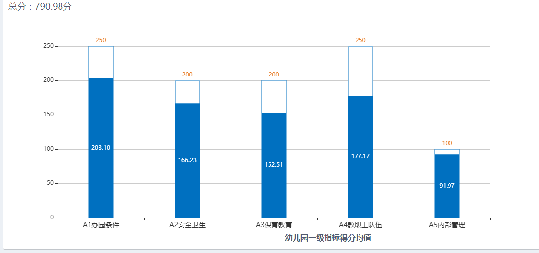 從幼兒園總分和一級指標(biāo)得分均值可以看出,在內(nèi)部管理方面評估得分率最高,其他四個(gè)方面特別是教職工隊(duì)伍還有差距,存在較大不足。評估數(shù)據(jù)分析中,公辦園(含小學(xué)附設(shè)幼兒班)得分783.91分,民辦園得分801.35分;城市園得分794.8分,農(nóng)村園得分774.66分;普惠園得分783.91分,非普惠園822.19分。城鄉(xiāng)之間、普惠園與非普惠園之間還是存在一定距離。公辦園特別是小學(xué)附設(shè)幼兒班還亟待提升辦學(xué)水平。