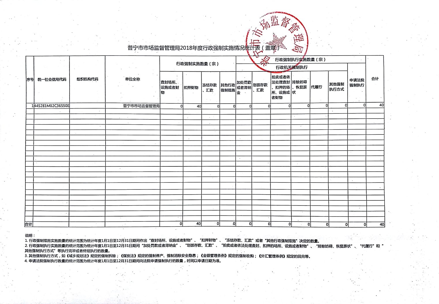 行政處罰實(shí)施情況統(tǒng)計(jì)表