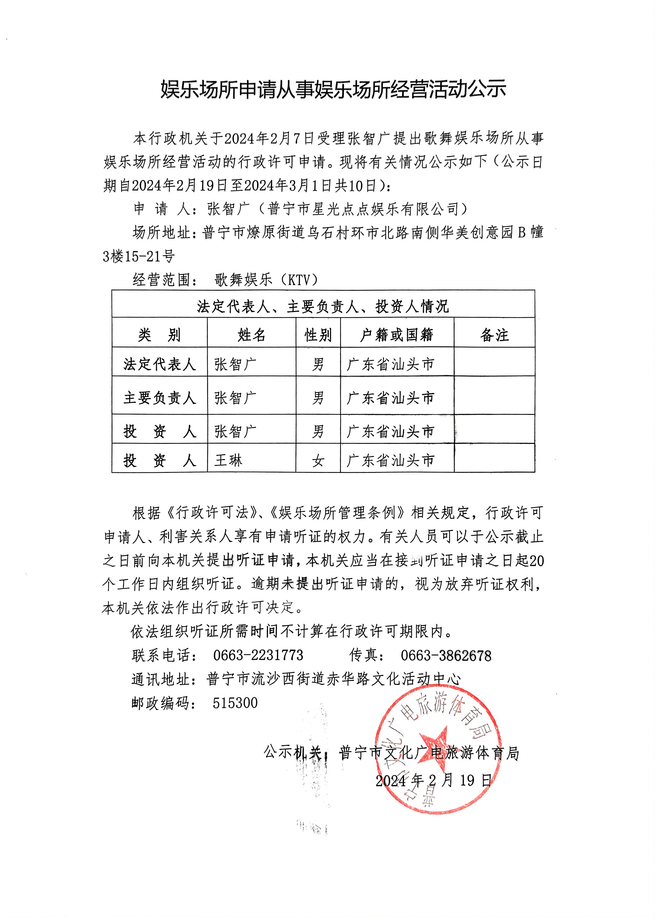 娛樂場(chǎng)所申請(qǐng)從事娛樂場(chǎng)所經(jīng)營(yíng)活動(dòng)公示
