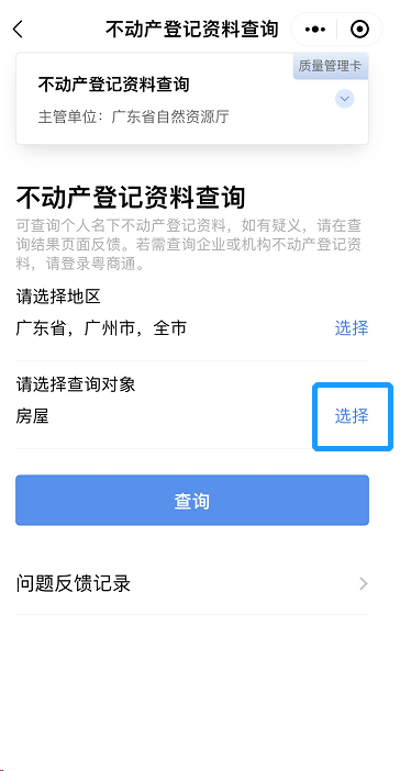 【(可選)第九步】選擇需要反饋問題的不動產(chǎn)。