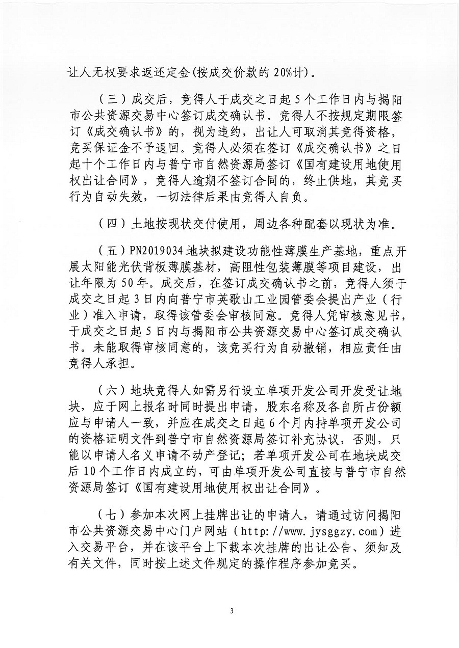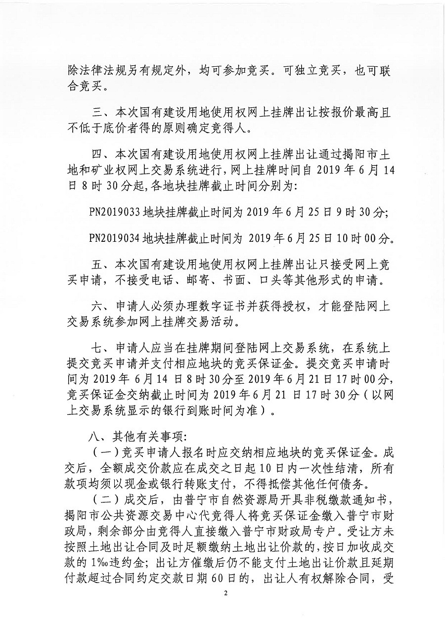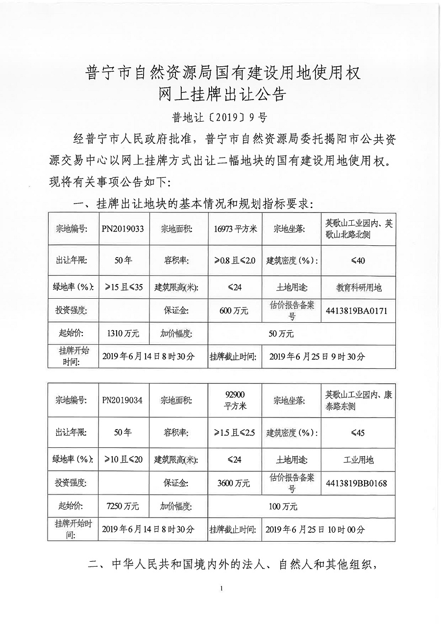 普寧市自然資源局國有建設(shè)用地使用權(quán)網(wǎng)上掛牌出讓公告(普地讓【2019】9號)