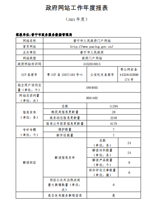 政府網(wǎng)站工作年度報表