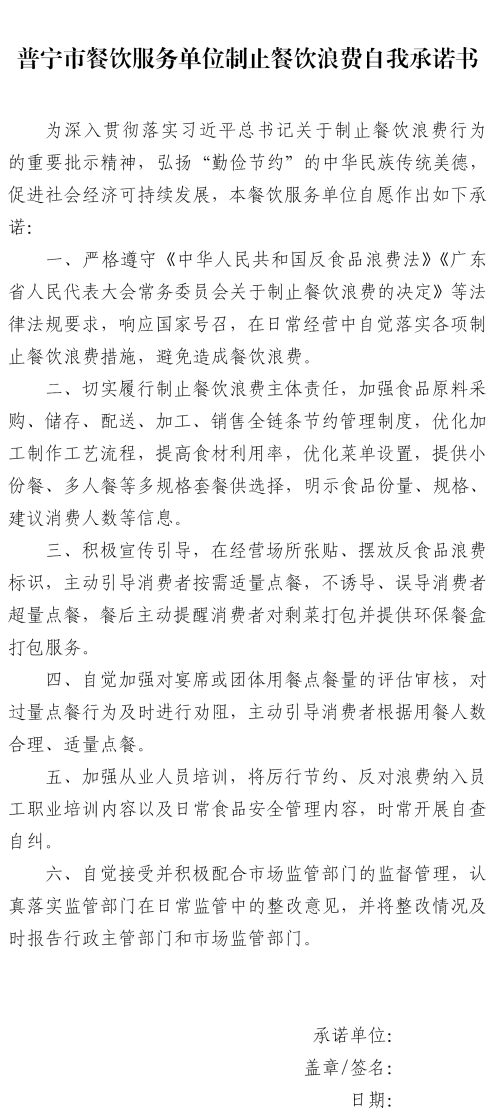 普寧市市場監(jiān)督管理局“制止餐飲浪費(fèi)專項(xiàng)行動”線上簽名承諾活動
