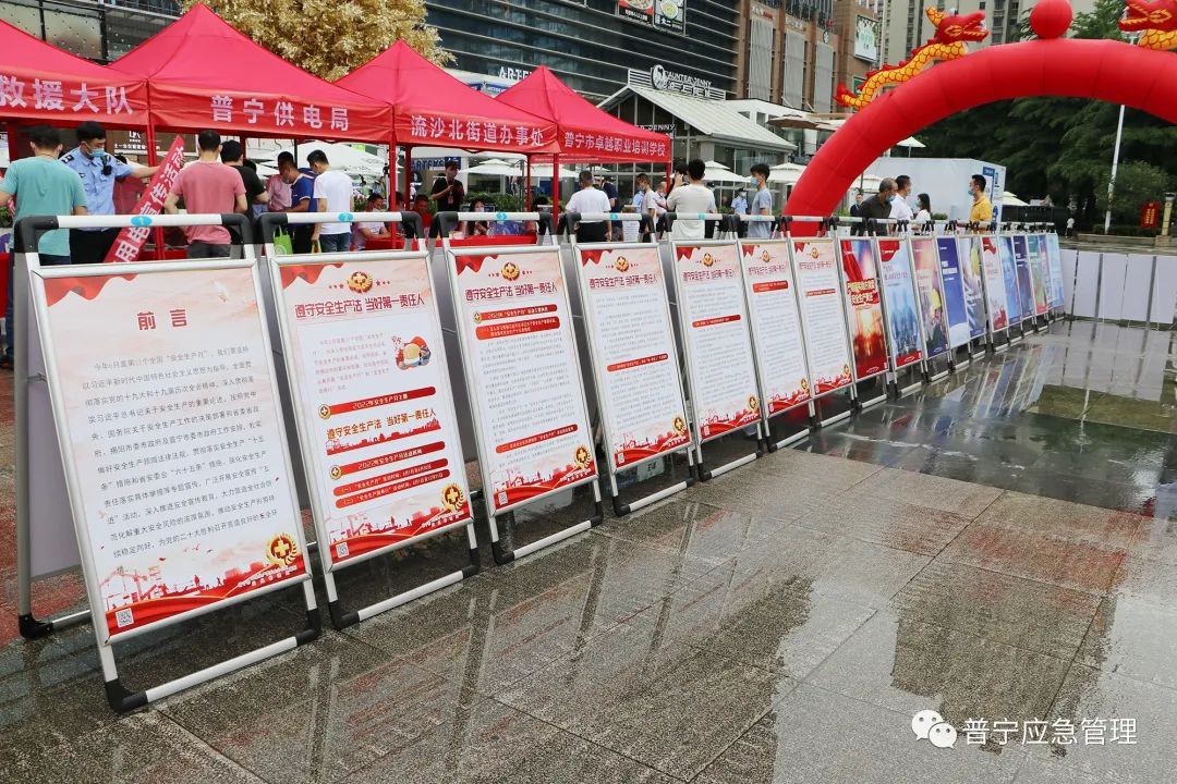 揭陽市應急管理局,普寧市應急管理局、公安局、教育局、住建局、交通運輸局、衛(wèi)生健康局、市場監(jiān)管局、林業(yè)局、紅十字會、消防救援大隊、供電局和流沙北街道辦事處、卓越職業(yè)培訓學校等單位在活動現(xiàn)場以設立咨詢臺、播放安全宣傳視頻、安全知識展板、發(fā)放宣傳資料等形式,宣傳普及安全生產(chǎn)、疫情防控、交通安全、建筑施工、校園安全、特種設備安全管理、用電安全、消防安全及應急救護等知識。
