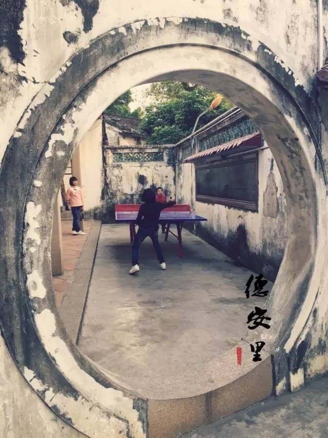 圓拱門里,孩子們正在打乒乓球。