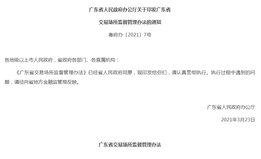 第二條本辦法所稱交易場所,是指在本省行政區(qū)域內(nèi)經(jīng)省人民政府同意設(shè)立或保留的、從事權(quán)益類或大宗商品現(xiàn)貨類等交易,并在名稱中使用“交易中心”“交易所”字樣的交易場所。僅從事車輛、房地產(chǎn)等實(shí)物交易的交易場所,依法經(jīng)批準(zhǔn)設(shè)立的證券、期貨交易所,以及國務(wù)院或國務(wù)院金融管理部門批準(zhǔn)設(shè)立的從事金融產(chǎn)品交易的交易場所除外。公共資源(含能源)等領(lǐng)域交易場所的設(shè)立、運(yùn)營、變更、終止和監(jiān)管,相關(guān)法律法規(guī)及政策文件有明確規(guī)定的,從其規(guī)定。