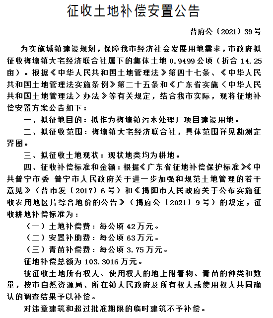 征收土地補(bǔ)償安置公告