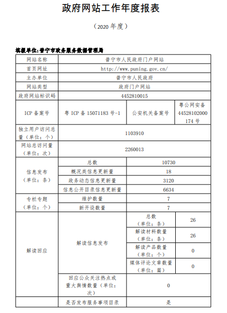 普寧市人民政府門戶網(wǎng)站2020年度政府網(wǎng)站工作年度報表